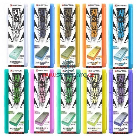 Kameny SHAPTON mají velice nízkou absorpci vlhkosti, takže po smočení kamene lze okamžitě zahájit broušení. Je proto velmi důležité nenechávat tyto kameny ve vodě příliš dlouho, 5-10 minut pro hrubé kameny je více než dostatečné a lešticí kameny (od JIS #4000) je třeba ponořit pouze na krátkou dobu. SHAPTON kameny jsou vyrobeny z keramického prášku s pojivem ze syntetické pryskyřice a jsou proto citlivější na vlhkost než „spékané“ kameny, jako jsou například kameny Zanmai nebo Matsunaga.