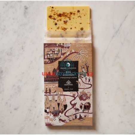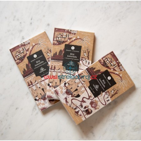 Obsah kakaové sušiny v bílé čokoládě minimálně 40 %.Čokoláda může obsahovat stopy ořechů, arašídů a mléka.