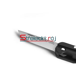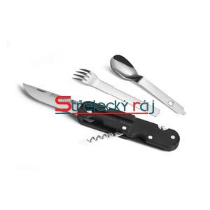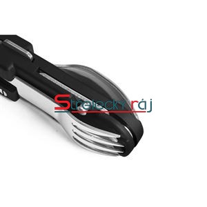 Čepel z tvrzené nerezové oceli je účinná jak u stolu, tak pro veškeré outdoorové použití. Chytrá ergonomická rukojeť z lehkého, nárazuvzdorného materiálu ABS nabízí snadný úchop a umožňuje umístit vidličku a lžíci na každou stranu nože v důmyslném systému patentovaných skluzů.