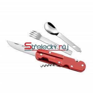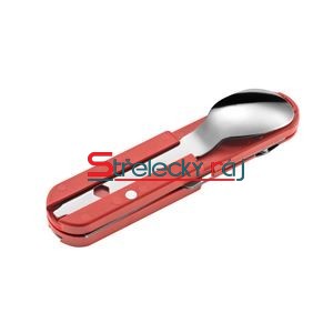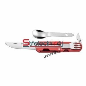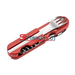 Čepel z tvrzené nerezové oceli je účinná jak u stolu, tak pro veškeré outdoorové použití. Chytrá ergonomická rukojeť z lehkého, nárazuvzdorného materiálu ABS nabízí snadný úchop a umožňuje umístit vidličku a lžíci na každou stranu nože v důmyslném systému patentovaných skluzů.