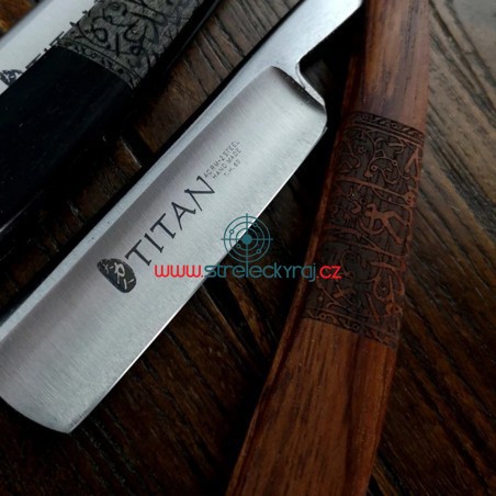 Kvalitní a ručně vyrobená břitva s 13/16 palcovou čepelí z japonské uhlíkové oceli ACRM 2 o tvrdosti 60-63 HRC. Použití této tvrdé oceli zajišťuje velmi dobré řezné vlastnosti. Čepel je broušena pod úhlem 15-20 stupňů a zajišťuje velmi jemné a optimální oholení pro všechny typy vousů. Střenka je vyrobena z mahagonového dřeva z Madagaskaru, které je ozdobeno rytinou. Břitva je uložena v elegantním koženém pouzdru, které využijete na cestách.