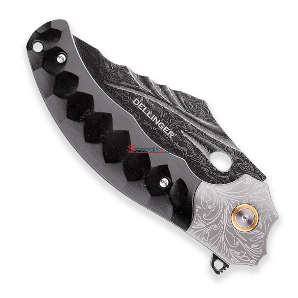 Zavírací nůž Dellinger Damascus Hakke je výrazný EDC nůž, který kombinuje masivní vzhled, precizní zpracování a praktickou funkčnost. Čepel z damaškové oceli zaujme nejen kresbou, ale i výraznou siluetou, která dává noži sebevědomý charakter a výborné řezné vlastnosti. Čepel je vyrobena z damaškové oceli s typickou kresbou. Každý kus je originál – žádné dvě čepele nejsou stejné. Výrazný hřbet s tvarovaným profilem zlepšuje kontrolu při řezu a podtrhuje robustní design nože.