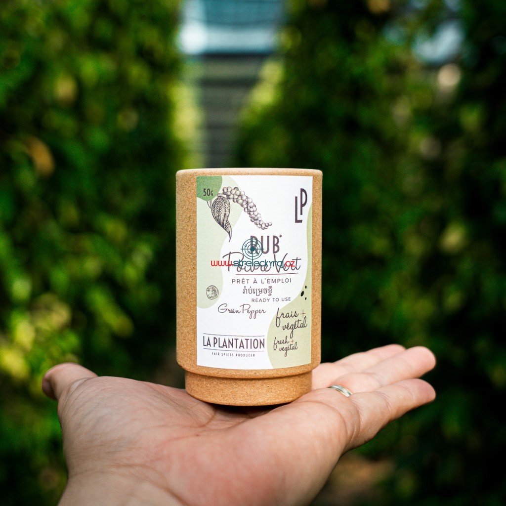Zelený dehydrovaný Kampotský pepř je chutí a vůní díky unikátní metodě sušení bez přístupu světla nejblíže čerstvému zelenému Kampotskému pepři a v této směsi naplno ukazuje svou krásu.