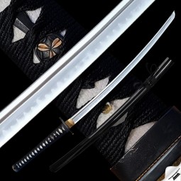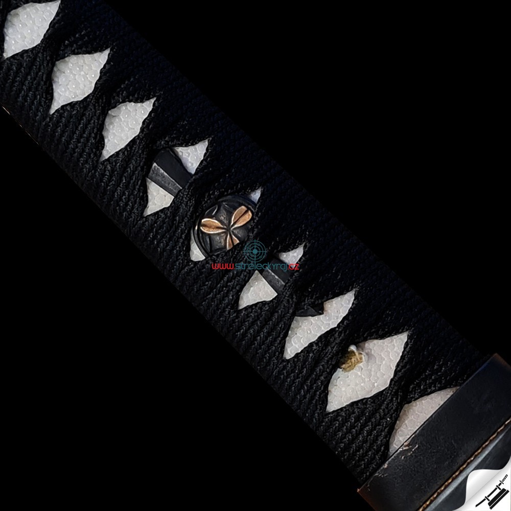 Kovaná čepel z oceli T-10 té nejvyšší kvality. Ocel byla laminována v monokompositnítní konfiguraci Maru - diferenciálně tvrzená. Uhlíková ocel T-10 (obsah 1,1% uhlíku a 0,4% manganu) je velmi pevná a skvěle drží ostrost. Výrazný reálný Choji Hamon je tvořen dle dávných tradičních metod, které vychází z mnohaletých zkušeností kovářského mistra. Po ručním broušení a leštění je povrch čepele jako zrcadlo. Čepel byla ve finální fázi leštěna kamenem hazuya - tím je dosaženo téměř žiletkového ostří (razor sharp). Jedná se o špičkovou repliku samurajského meče, která je vhodná k sekovým zkouškám a lze ji rozložit na jednotlivé části. Tato čepel byla vyzkoušena a testována tak, aby odstranila vše co jí stojí v cestě ! Sori (zakřivení čepele) je speciálně navrženo tak, aby bylo dosaženo co možná nejjemnějších a nejčistších řezů. To vše v kombinaci s výběrem tradičního Koshirae zaručuje, že získáte to nejlepší z hlediska vzhledu i funkčnosti. Uhlíková ocel T-10 má působivou tvrdost ve škále HRC- perfektní kombinace této tvrdosti je podtrženo zakřivením čepele Sori, které umožňuje snadné přeseknutí tatami, slaměné rohože, nebo bambusu pro tameshigiri. Full tang konstrukce této katany výrazně zvyšuje sílu meče. Hrot čepele je tvarovaný shinogi-zukuri a chu kissaki se skutečným Diamond-Shaped Yokote, které je velmi dobře definováno tím, že hamon prochází po celé délce přes Boshi.