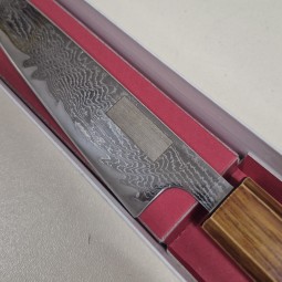 Extrémně ostrý japonský nůž Petty se používá pro různé úkoly v kuchyni, jako je čištění a krájení menšího ovoce, zeleniny, sýrů a dalších drobných potravin. Je to univerzální nůž, který je oblíbený pro svou všestrannost a přesnost. Petty má obvykle kratší čepel než jiné japonské nože, s délkou čepele typicky mezi 8-15 cm. Čepel je široká, s rovným nebo mírně zakřiveným ostřím, což umožňuje precizní krájení a čištění potravin. Hrana čepele nože Petty může být oboustranná nebo jednostranná, a to závisí na konkrétním modelu. Petty je ideální nůž pro detailní práce v kuchyni, jako je ořezávání ovoce a zeleniny, krájení sýrů, čištění masa nebo dělání jemných řezů. Díky své menší velikosti a precizní čepeli je vhodný pro kuchaře, kteří si cení přesnosti a detailů při přípravě jídla. Je také oblíbený mezi domácími kuchaři, kteří hledají univerzální nůž pro různé kuchyňské úkoly.