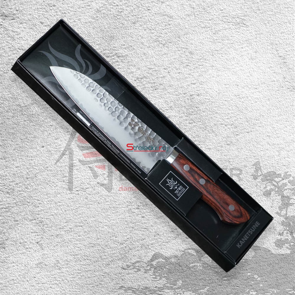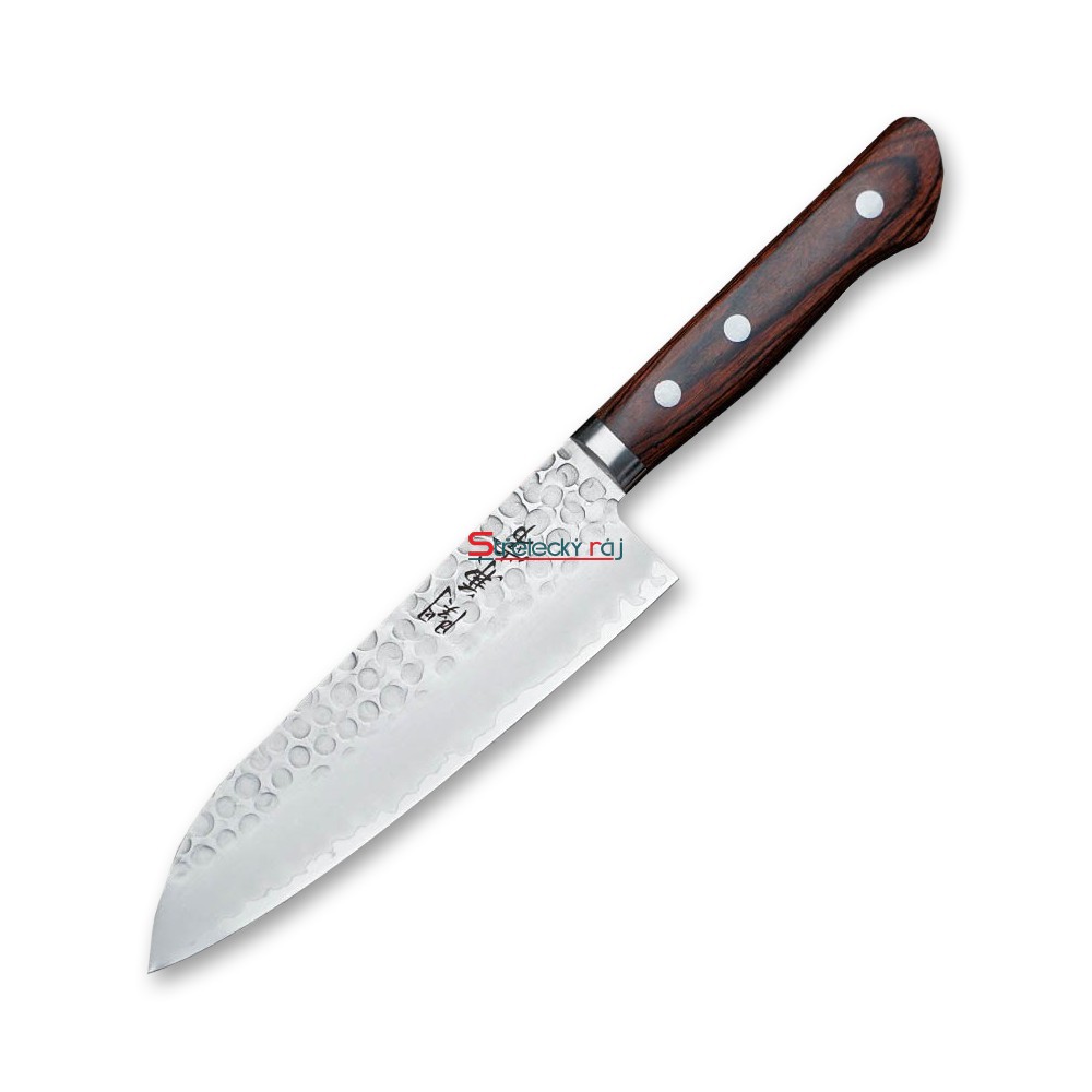 Santoku je dokonalým společníkem při práci s masem, rybami, zeleninou a ovocem. Nepřekonatelné vlastnosti nože oceníte například při krájení cibule. Ostrost čepele zajistí minimální únik tekutiny a vaše pokrmy budou plné šťávy a vitamínů. Široká čepel a oválná rukojeť s trojím nýtováním vám poskytne tu nejlepší kontrolu při řezání a krájení. Japonská preciznost a nové technologie činí tento nůž z oceli VG-1 Stainless steel core/SUS410 Stainless steel (Tsuchime "satin" finish) jedinečným a ideálním jak pro domácí, tak profesionální použití