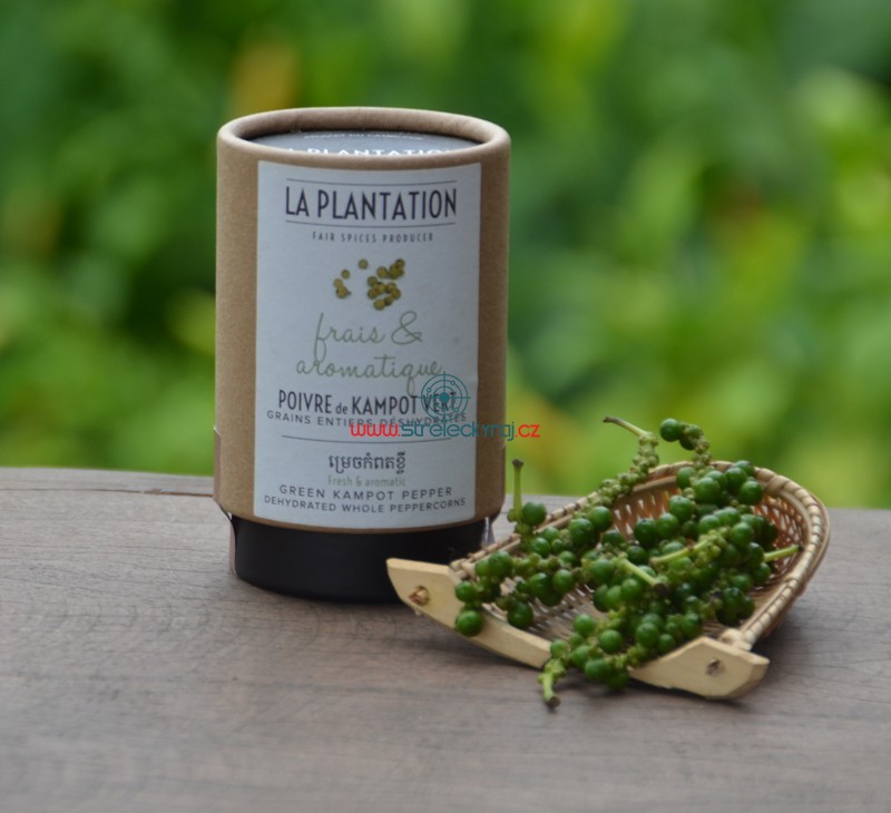 Tato varianta unikátního pepře z Kambodži zachovává sytě zelenou barvu zrníček. Těsně po sklizni a ručním tříděním projdou zrníčka procesem dehydratace za nízké teploty. Vznikne tak exkluzivní produkt, který nikde jinde nenajdete.