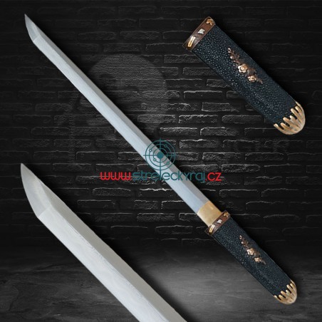 • Celková délka meče včetně sayi - 52 cm• Váha meče včetně sayi - 540 g• Váha meče bez sayi - 380 g• Délka čepele (Nagasa) – 35.4 cm (včetně Habaki 2.4 cm)• Typ čepele – Naginata Naoshi Zukuri• Materiál čepele – AISI 1075 skládaná• Tloušťka čepele (u Habaki) - 0.6 cm• Výška čepele (u Habaki) - 2.6 cm• Tloušťka čepele (kissaki) - 0.5 cm• Výška čepele (kissaki) - 1.9 cm• Hamon - reálný, typ Gunome• Habaki - mosaz (délka 2.4 cm)• Tsuka - (rukojeť) je v provedení dashi zamé, t.j. potažená rejnočí kůží bez opletu (tsuka maki).• Saya – (plášť - obal) je potažená přelakovanou a přeleštěnou rejnočí kůží ve stylu nuri zamé.