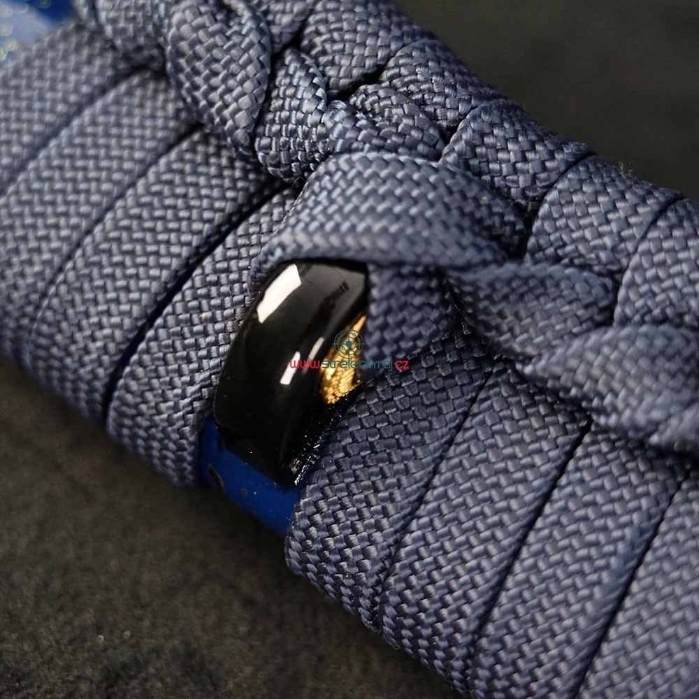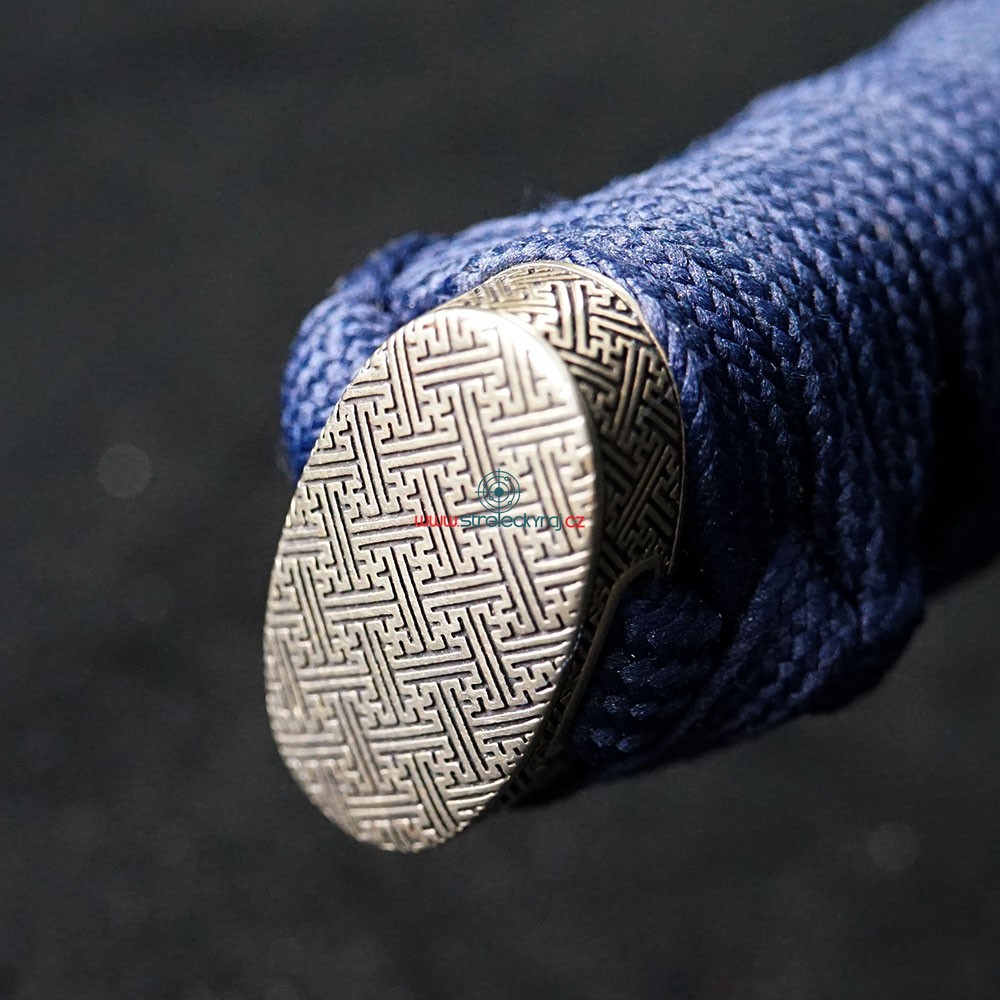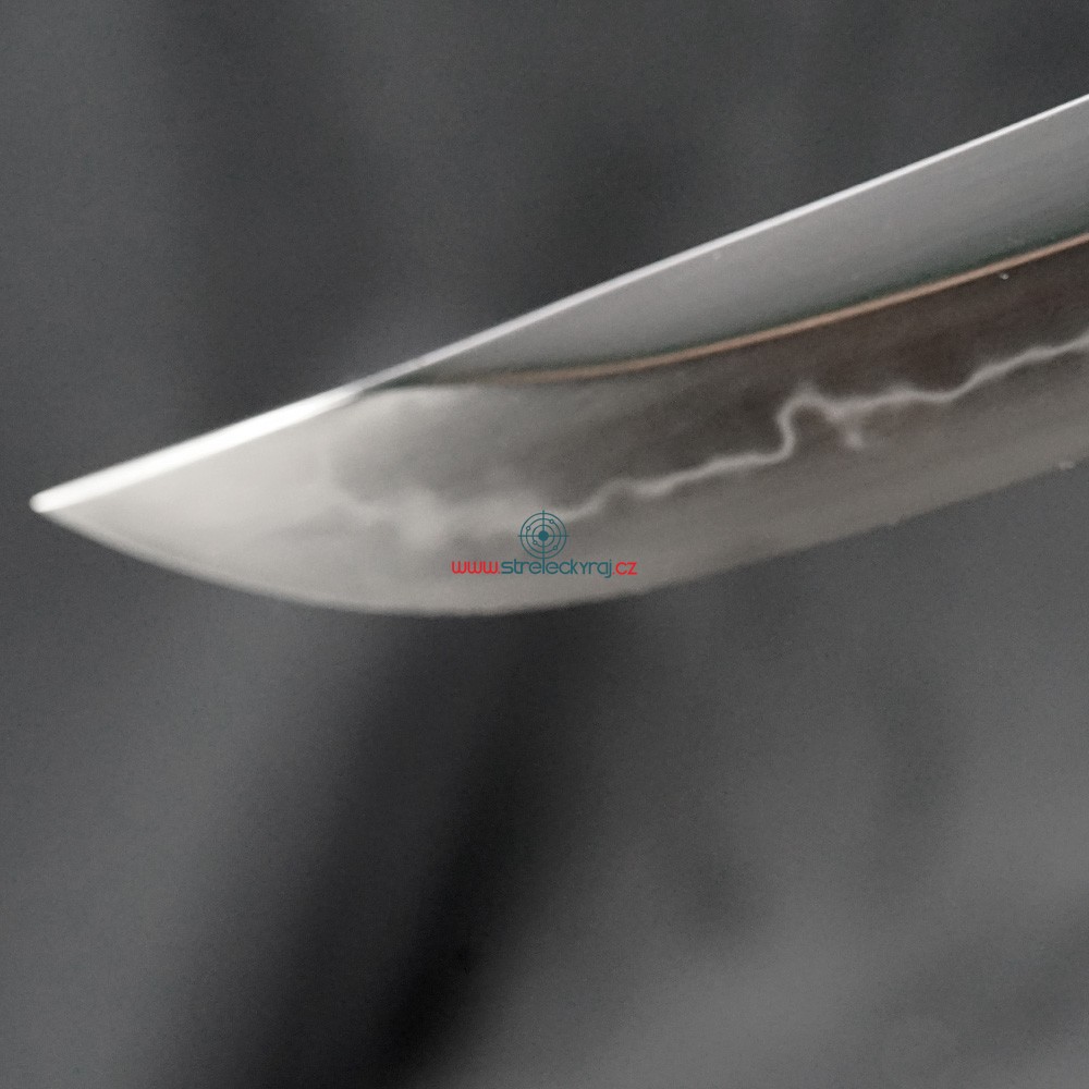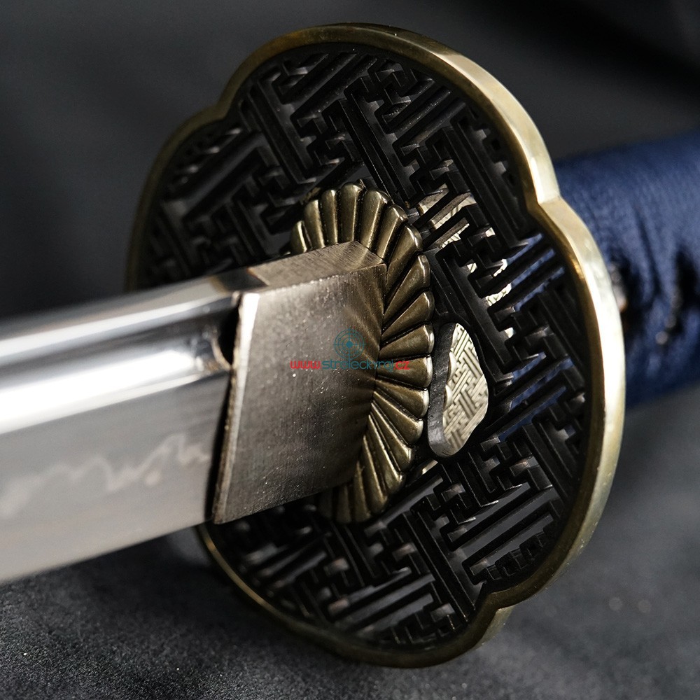 Tato exkluzivní replika katany Aikumo je vyrobena z vysoce uhlíkové nástrojové oceli AISI 1095. Čepel byla parciálně tvrzena tradiční metodou, čímž vznikl unikátní reálný hamon Choji. Pro dosažení optimální ovladatelnosti je čepel vybavena žlábkem Bo-Hi, který snižuje hmotnost a při seku vydává charakteristický zvuk. Saya z tvrdého dřeva v lesklé modré úpravě s jemným dekorem doplňuje elegantní modrostříbrný oplet rukojeti.