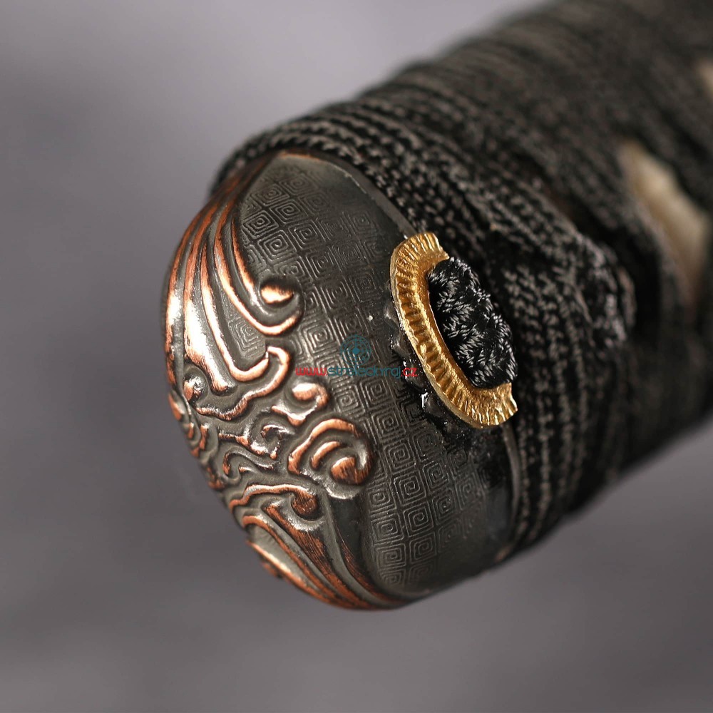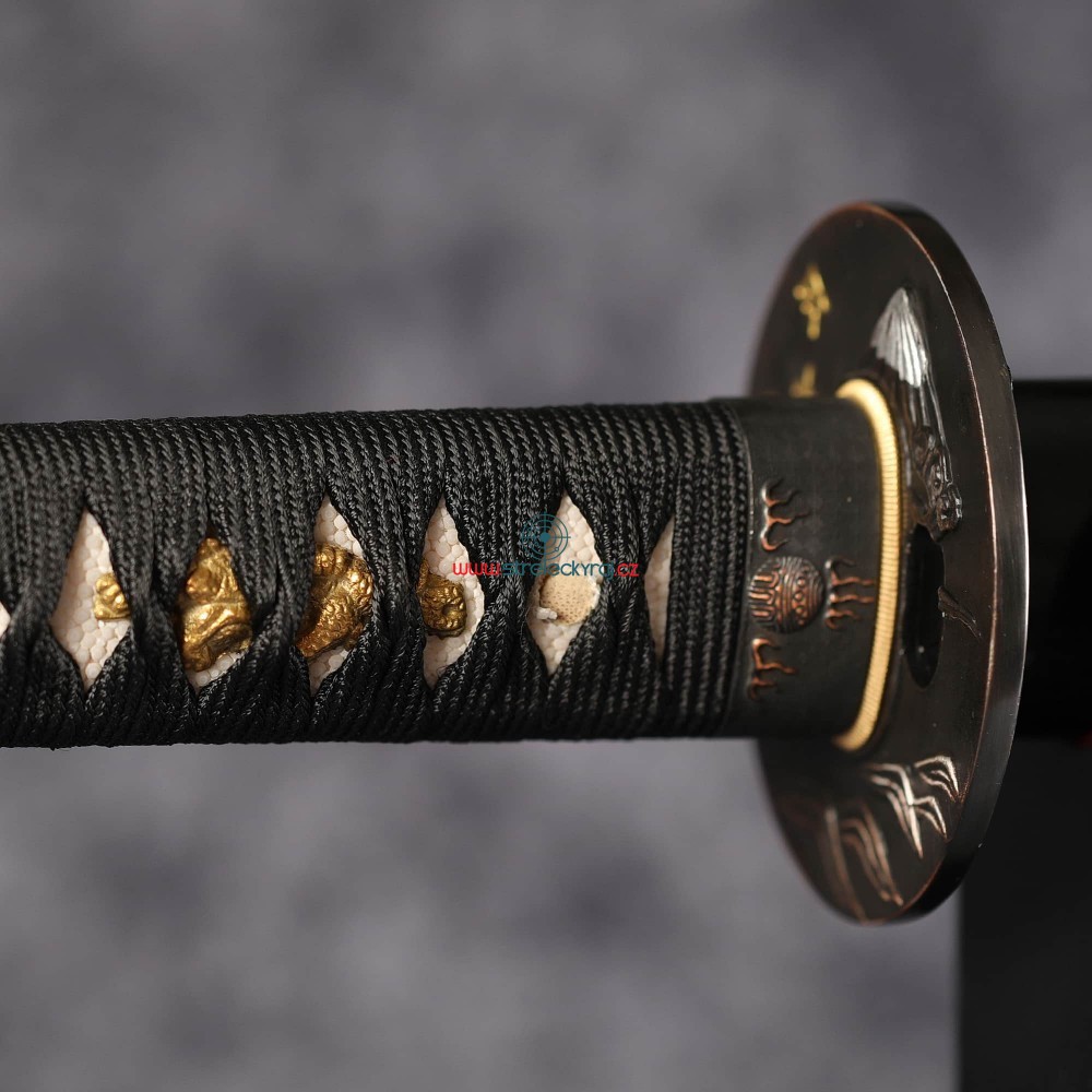 Reálný Choji hamon je tvořen dle dávných tradičních metod, které vychází z mnohaletých zkušeností kovářských mistrů. Tento proces vytváří na čepeli překrásný hamon Hada a Martensite (zrna). Jedná se o špičkovou repliku samurajského meče, která je vhodná k sekovým zkouškám a lze ji rozložit. Tato čepel byla vyzkoušena a testována tak, aby odstranila vše co jí stojí v cestě ! Sori (zakřivení čepele) umožňuje provádění sekání tak, aby bylo dosaženo co možná nejjemnějších a nejčistších řezů. To vše v kombinaci s výběrem tradičního Koshirae zaručuje, že získáte to nejlepší z hlediska vzhledu i funkčnosti. Monokompositnítní uhlíková ocel AISI1095 má působivou tvrdost ve škále HRC- perfektní kombinace této tvrdosti je podtrženo zakřivením čepele Sori, které umožňuje snadné přeseknutí tatami, slaměné rohože, nebo bambusu pro tameshigiri. Full tang konstrukce této katany výrazně zvyšuje sílu meče. Bo-Hi (Žlábek) propujčuje kataně výrazný zvukový efekt při nácviku bojových umění.Hrot čepele je tvarovaný shinogi-zukuri a shubo zukuri kissaki (špičatý hrot), který je velmi dobře definován tím, že hamon prochází po celé délce přes Boshi.