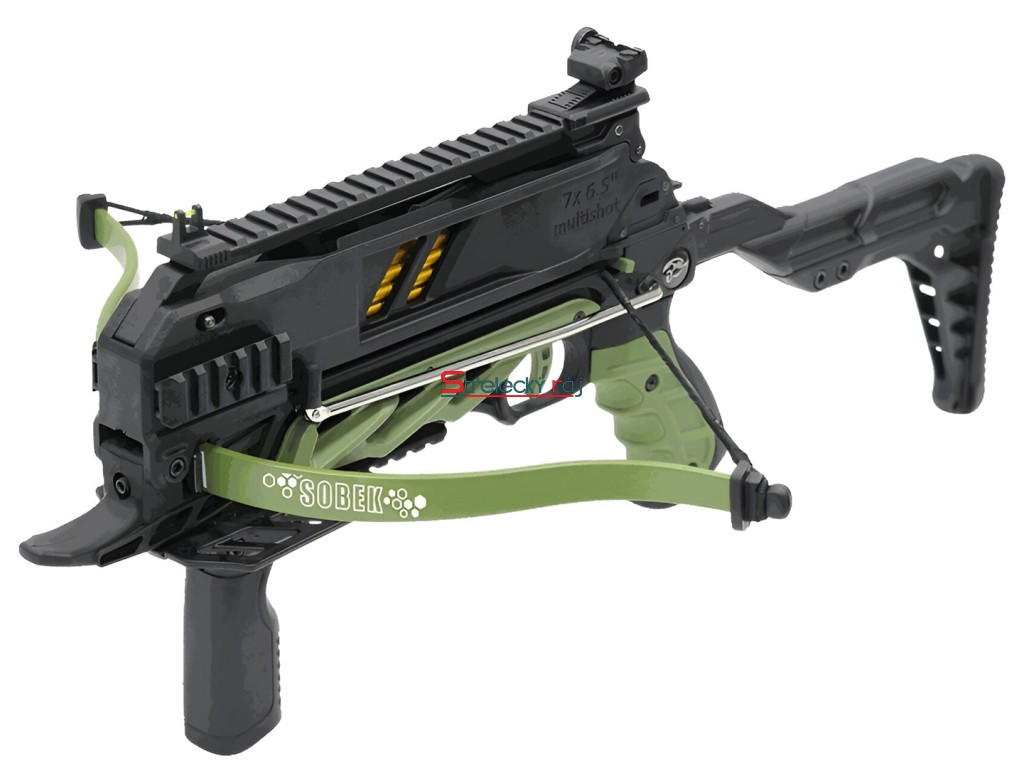 Beast Hunter SOBEK 80 lbs není hračka – jedná se o funkční strelecký nástroj, který může způsobit zranění, pokud se s ním nezachází bezpečně. Střílejte vždy do bezpečného zázemí, používejte vhodné ochranné pomůcky a nikdy neodpalujte směrem na osoby či zvířata.Parametry:Typ kuše: pistolová kuše Beast Hunter SOBEK 80 lbsNapínací síla: 80 lbPočáteční rychlost šípu: až 185 FPSZásobník: automatický na 7 šipekŠipky: kovové šipky 6,5″ (předepsaný typ Sobek)Nástřelová vzdálenost: doporučeno 10-15 mrekreační terč)Bezpečnostní prvky: pojistka nad spouští, přední madlo s chráničem prstů Mechanická mířidla: pevná muška a stavitelné hledíMontážní lišta: 22 mm pro optiku/kolimátor Nastavitelná délka pažby / kuše: 560-620 mmŠířka lučiště: 420 mmHmotnost: 1250 gObsah balení:Kuše SOBEK černo-zelenáMadlo s integrovaným chráničem prstů7ks šíp Sobek 6,5"Návod se záručním listemKartonová krabice