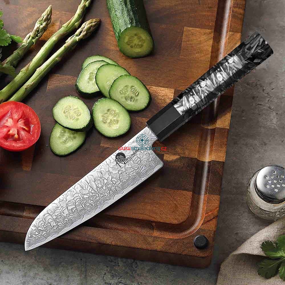 Vzhled inspirovaný vesmíremTmavá karbonová rukojeť připomíná nekonečný vesmír a v kombinaci s precizním ostřím tvoří jedinečný kuchyňský nástroj. Díky dokonalé vyváženosti minimalizuje únavu ruky a poskytuje maximální kontrolu nad každým řezem.