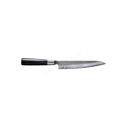 Bogata w produkty linia SENZO CLASSIC łączy w sobie najlepsze cechy wschodniej i zachodniej filozofii wytwórstwa noży. Zachodnie w większości są kształty i przeznaczenie noży, wschodnie z kolei są rzemiosło i design. W serii znajdują się noże o odmiennych ostrzach i zróżnicowanej wadze, czego wymaga się od narzędzi kuchennych w kręgu kultury zachodniej. Prosty, ale wyrafinowany design linii SENZO CLASSIC pozostaje w duchu japoński.Ostrza noży SENZO CLASSIC wykonuje się z 33-warstwowej nierdzewnej tzw. stali damasceńskiej* wzmocnionej rdzeniem ze stali VG-10**. Kompozycja ta jest niezwykle trwała, a samo ostrze odporne na proces niszczenia i tępienia. Na zbliżeniu widać delikatny, falowany wzór, który przywodzi na myśl miecze samurajskie.Noże SENZO CLASSIC cechuje bardzo wyrafinowana konstrukcja. Na powierzchni uchwytu wykonanego z tzw. Pakkawood*** w kolorze czarnym nie ma nitów, co czyni je niezwykle eleganckim. Czerwony pierścień u nasady ostrza przyciąga wzrok, a młotkowanie ostrza „Tsuchime” nie tylko efektownie wygląda – sprawia również, iż krojone produkty nie przywierają do noża i łatwo ześlizgują się z ostrza.*Stal damasceńska – współczesna tzw. stal damasceńska składa się z nałożonych na siebie kolejnych, niezwykle cienkich arkuszy stali nierdzewnej, z czego 25% środkowych arkuszy zwanych jest rdzeniem, zaś na pozostałe 75% składają się arkusze o różnej twardości – naprzemiennie nakładanej stali miękkiej i twardej. W efekcie na powierzchni noża powstaje efekt „falowania”.**Stal VG-10 ten rodzaj stali uznany został za jeden z najlepszych do produkcji noży kuchennych. Kucharze doceniają zarówno piękny design noży wykonanych z VG-10, jak i ich wyjątkową trwałość. VG-10 to materiał o dużej twardości, na skali HRC otrzymał wartość HRC 60. Dzięki temu wyprodukowane z niego noże są nieprawdopodobnie ostre oraz bardzo odporne na ścieranie.***Pakkawood to laminowane drewno brzozowe lub klonowe, impregnowane żywicą. Cechuje je bardzo duża odporność na ciepło i wilgoć, zostało opracowane specjalnie do rękojeści noży.