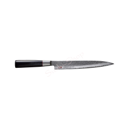 Nóż kuchenny Suncraft SENZO CLASSIC Sashimi 210 mmTen nóż posiada smukłe, dość długie i niebywale ostre ostrze. Używa się go podczas przygotowywania sushi i sashimi, krojenia cienkich plastrów oraz filetowania niektórych gatunków ryb. Jednostronne zaostrzenie pozwala precyzyjnie wykrawać estetyczne plastry, które łatwo odchodzą od noża. Nóż Sashimi wymusza na kucharzu technikę krojenia – powinno się nim ciąć tylko w jedną stronę, do siebie. Dzięki temu na powierzchni krojonego produktu nie zostają zygzakowate ślady, a przekrój plastra jest perfekcyjny, niezmiażdżony i nieposzarpany.Przeznaczenie: