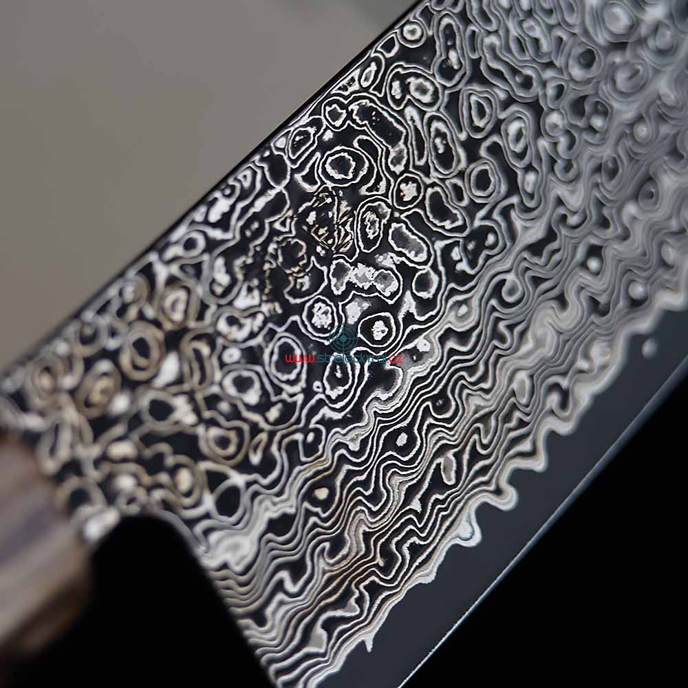 Nůž Gyuto / Chef 200 mm Suncraft Dawn Limited Editition má ostří z japonské práškové oceli SG2, která vyniká svou tvrdostí a schopností udržet ostří nože. Čepel nože je tvořena jádrem z práškové oceli SG2 o tvrdosti 63+/-1 Rockwella, které je vloženo mezi 110 vrstev dvou nerezových ocelí rozdílných tvrdostí, které zajišťují mimořádnou odolnost a houževnatost. Vzor vzniklý propletením vrstev oceli vytváří téměř jedinečný efekt, který Vás naprosto uchvátí. Tento vzor také minimalizuje tření při řezu a zabraňuje přilepení krájeného materiálu k čepeli. Díky citlivé volbě materiálu a precizní finální úpravě (black coating) se čepel snadno udržuje. Velmi dlouho si zachovává ostrost a výborně se hodí k broušení na vodních kamenech.