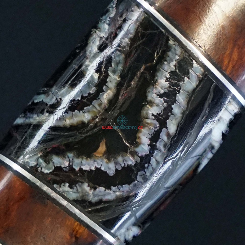 Překrásné dřevo je kombinované s fosílií mamutího zubu a tvoří perfektní pár - konečný výsledek je naprosto uchvacující. Více jak 10.000 let stará fosilie mamutího zubu, byla nalezena na území Sibiře. Je to vzácný a okouzlující materiál. Pouhým dotykem ucítíte poslední odkaz legendárního stvoření, které putovalo po Zemi na úsvitu lidstva.