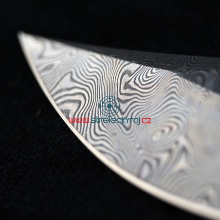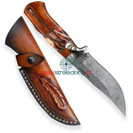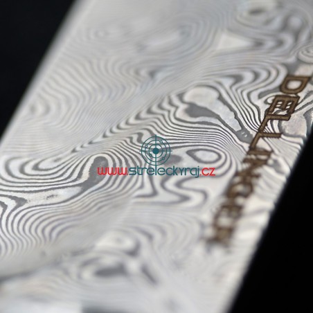 Exklusivní, přitom praktický a výkonný lovecký nůž, který má čepel ze 110 vrstev damaškové oceli. Tato výjimečná ocel má dlouhotrvající ostrost při tvrdosti okolo R60 +/- 1 Rockwella.