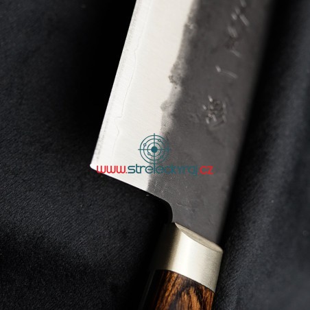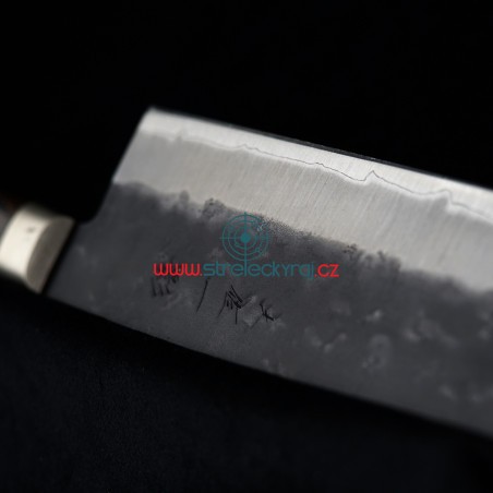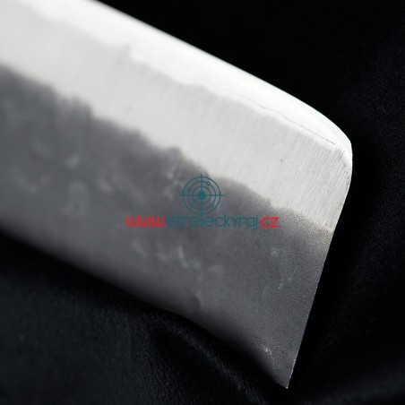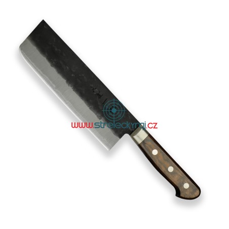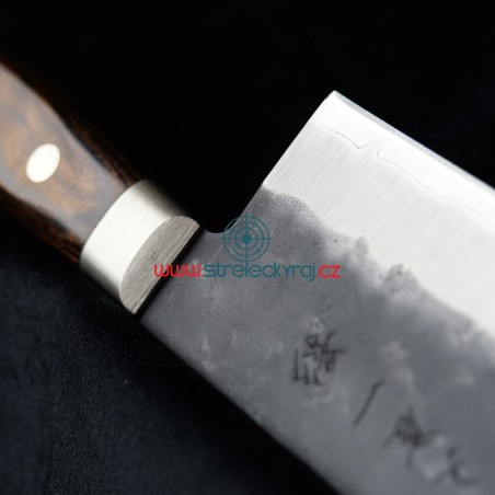 Překrásný všeobecně použitelný nůž především na zeleninu z oceli AOGAMI Super steel s působivým designem a nejvyšší kvalitou. Nakiri svým tvarem připomíná spíše sekáček na maso. S ostřím dlouhým 165 mm snadno nakrájíte veškerou zeleninu na drobné kostičky nebo proužky. Je vhodný i pro krájení a sekání tvrdé zeleniny jako je zelí nebo kapusta. Výška čepele Vám umožní nakrájenou surovinu jednoduše nabrat a přenést do hrnce či pánve.Délka rukojeti: 115 mmDélka ostří: 165 mmCelková délka: 285 mmHmotnost: 220 gTosa-Ichi Shadow nůž Nakiri 165 mm má ultra ostré řezné jádro z japonské oceli Aogami Super (Hitachi Metals Ltd.) je jednou z nejlepších japonských uhlíkových ocelí. Kromě toho, že obsahuje více uhlíku, chromu a wolframu než modrá ocel č. 1, zahrnuje také molybden. Má velmi dobrou ostrost hran a vynikající retenci. Je schopna dosáhnout vysoké tvrdosti až 65 HRC, aniž by byla křehká. V důsledku toho mnozí nadšenci nožů hodnotí Aogami Super jako jednu z nejlepších vysoce uhlíkových ocelí na světě. Vnější povrch je z SUS-405 clad steel.Rukojeť je vyrobena z materiálu Pakka-wood se 3 nýty. Vždy je pečlivě ručně leštěná, ergonomicky tvarovaná a navržena pro vynikající ruční ovládání. Trojité nýtování nože k rukojeti zajišťuje dokonalou pevnost a spojení. Pakka-wood je vodotěsný, nepromokavý a zcela bez zápachu. Můžete si být jisti, že materiál Pakka-wood nebude v průběhu času korodovat, oxidovat nebo se nestane měkčí a křehčí. Tento materiál nevyžaduje prakticky žádnou údržbu, na rozdíl od tradičních materiálů, jako je dřevo.