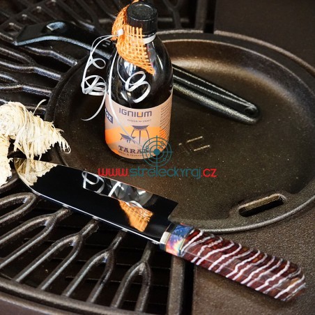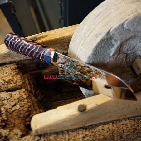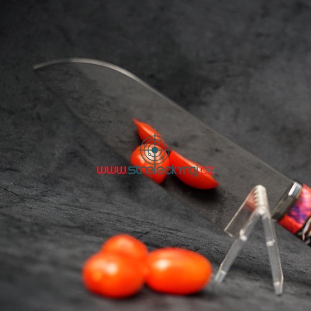 Ostření nože: pro ostří kuchyňského nože z oceli WOOTZ doporučujeme použití diamantových a vodních brusných kamenů. Pokud si nejste 100% jisti svými schopnostmi a šikovností, obraťte se na nás. Případně vyhledejte profesionálního brusiče ve Vašem okolí. Škody, které by mohly vzniknout při neodborném broušení jsou nevratné.