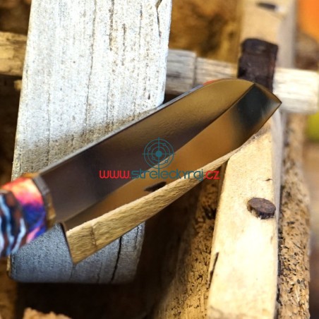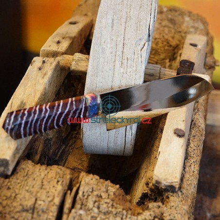 Ergonomická rukojeť západního stylu je vyrobena z vzácných fosílií mamutího zubu a doplněna kroužkem ze stabilizovaného dřeva. Pečlivě ručně leštěná, ergonomicky tvarovaná a navržena pro vynikající ruční ovládání.