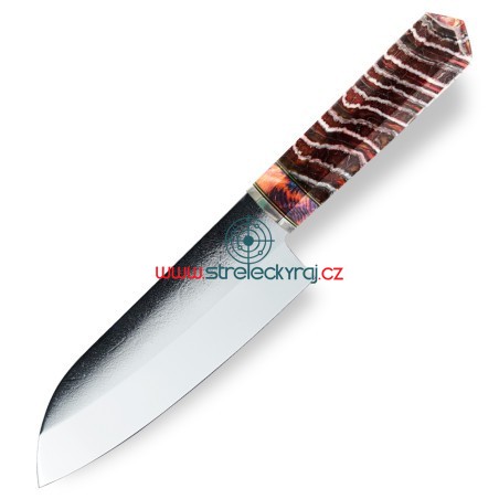 jedinečný nůž šéfkuchaře Santoku 145 mm Dellinger Mirror Wootz Mammut Collect Nr.4