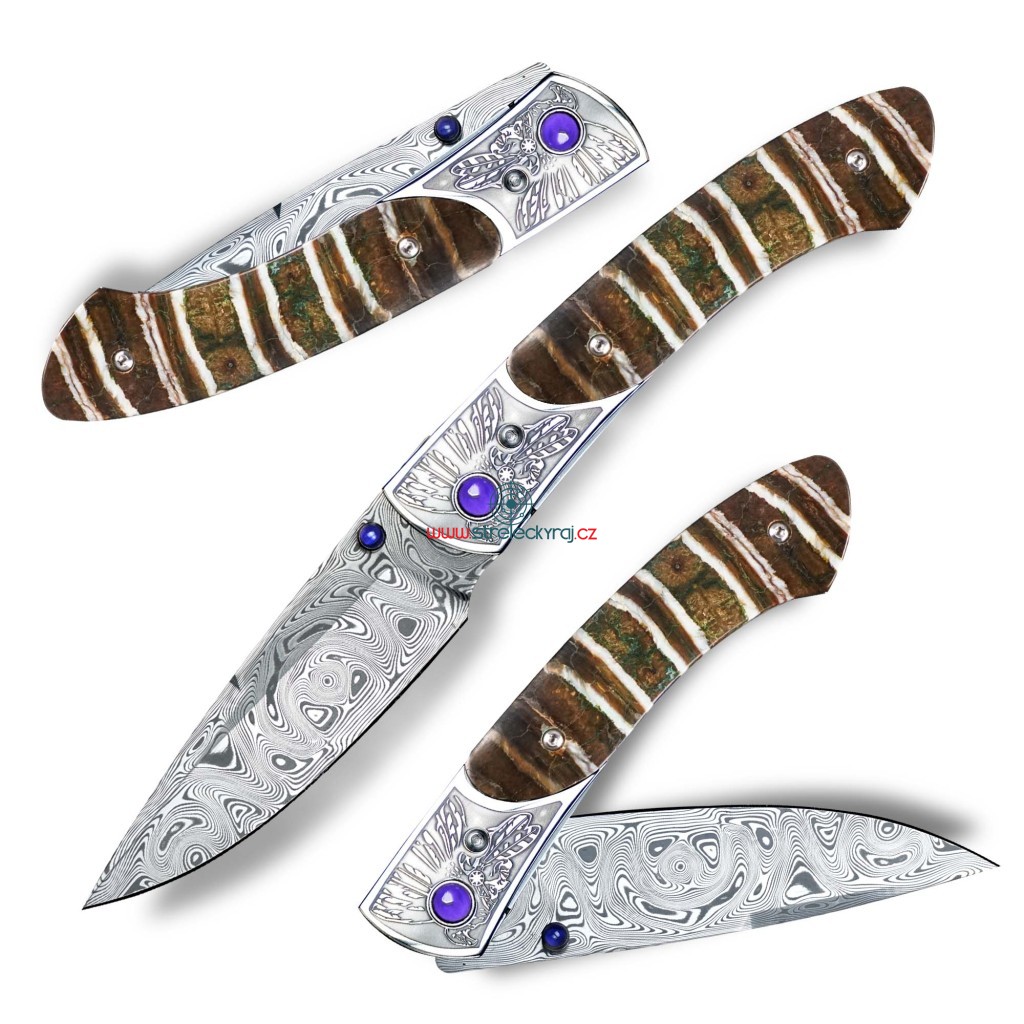 Rukojeť je kombinací nerezové záštity s vyobrazením indiána a fosílie mamutího zubu. Společně tvoří perfektní pár a konečný výsledek je naprosto uchvacující. Více jak 10.000 let stará fosilie mamutího zubu, byla nalezena na území Sibiře. Je to vzácný a okouzlující materiál. Pouhým dotykem ucítíte poslední odkaz legendárního stvoření, které putovalo po Zemi na úsvitu lidstva.