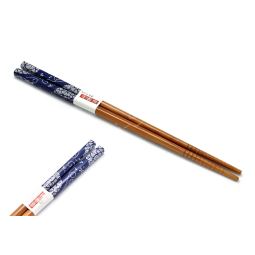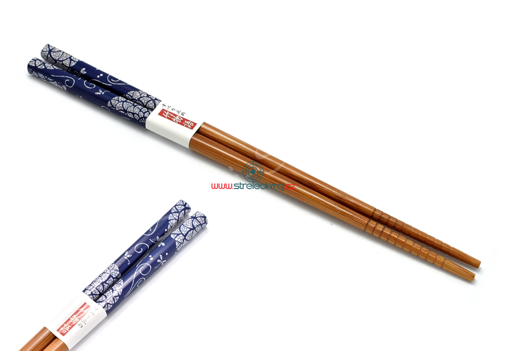 Tyto elegantní jídelní hůlky jsou vyrobeny z kvalitního přírodního dřeva a doplněny stylovým modrobílým dekorem s tradičním japonským motivem na horní části. Jejich povrchová úprava zajišťuje příjemný úchop i snadné čištění. Spodní část je jemně rýhovaná pro lepší uchopení jídla. Skvěle poslouží pro každodenní stolování i jako originální dárek pro milovníky asijské kuchyně a estetiky.