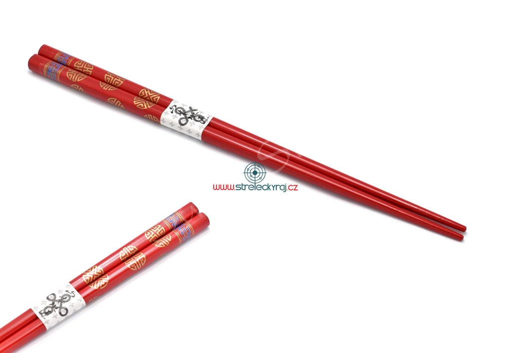 yto červené jídelní hůlky se zlatými a modrými ornamenty spojují tradiční čínskou symboliku s moderním lesklým provedením. Výrazný červený základ doplňují elegantní zlaté znaky a modré detaily, které jim dodávají slavnostní a noblesní charakter. Díky svému vzhledu se skvěle hodí nejen ke každodennímu používání, ale i jako stylový dárek.