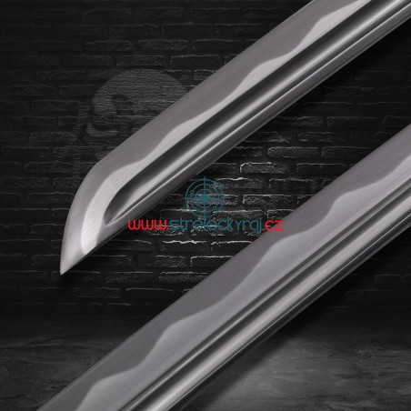 Tato kopie japonského meče je příkladem s ručně kovanou čepelí a mekugi (kolíkem pro uchycení čepele v rukojeti).