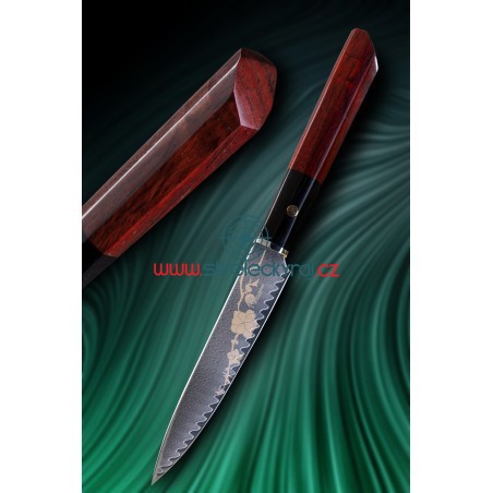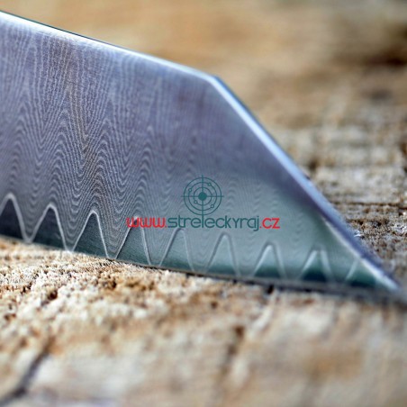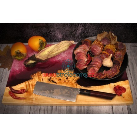 Každý nůž je vyroben z přírodních materiálů. Každý kus z damascénské oceli je originální a nenapodobitelný, proto Váš nůž nemusí vypadat přesně tak jak na fotografii. Nůž, který obdržíte, bude stejně kvalitní a detailně opracovaný, ale může se mírně lišit.