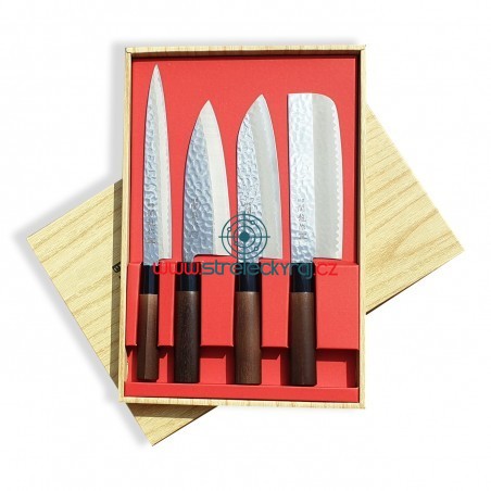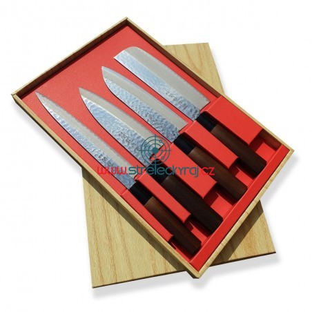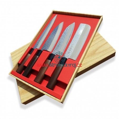 2/ Japonský typ nože Sashimi ( Yanagiba )- z kvalitní nerezové oceli 420 J2 - HRC 53(+/-), byl vyroben ve městě Seki, které je známé výrobou nožů po celém světě. Robustní jednostranný nůž broušený v japonském stylu pouze z jedné strany. Profesionální dlouhý krájecí nůž určený k řezání tenkých plátků ryb pro sushi a sashimi. Jeho překrásná robustní čepel je schopna řezat přísady v dlouhých nepřerušovaných řezech a tím zachovat jejich celistvost a svěžest. Yanagiba je jedním z nejdůležitějších tradičních japonských nožů a je součástí repertoáru mnoha kuchařů. Dokonce i nejjednodušší úkoly s tímto krásným a funkčním nožem jsou povýšeny na mimořádný zážitek.