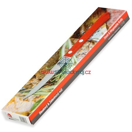 Steakový/zeleninový nůž se zubatým ostřím 105 mm jistě překvapí svým ostřím jak hosty, tak i vás. Když se zařízne do masa, poskytne perfektně čisté, rovné plátky. Tím zajistí, že všechna šťáva a chuť zůstává uvnitř každého kousku. Zoubkovaná čepel také snadno krájí rajčata a podobnou měkkou zeleninu se slupkou. Tento nůž si rozhodně zaslouží místo ve vaší kuchyni nebo u grilu.