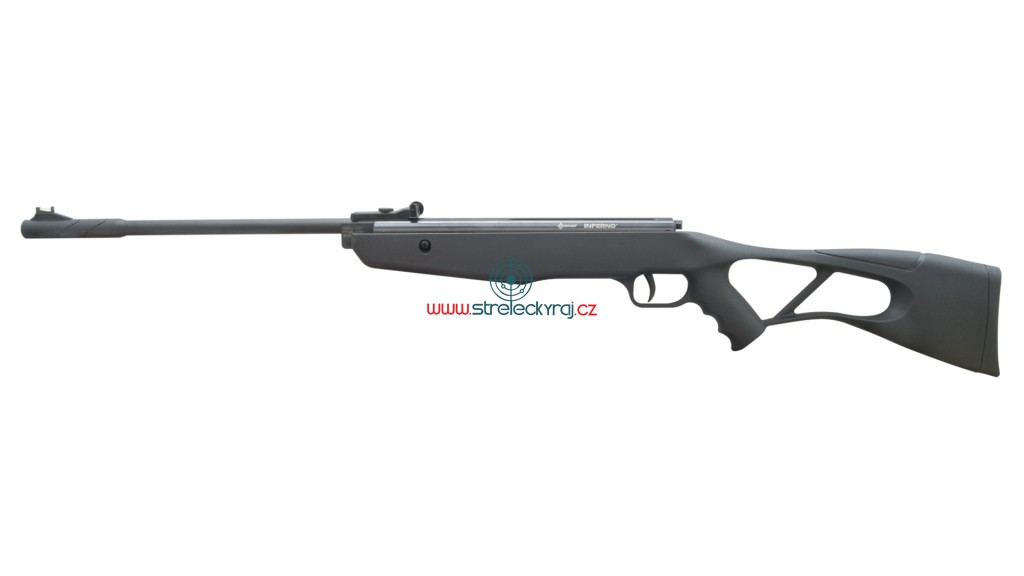 Tento model je zařazen jako zbraň kategorie D v České republice — může ji zakoupit osoba starší 18 let bez nutnosti vlastnit zbrojní průkaz nebo provádět registraci. Nicméně doporučujeme ověřit aktuální zákonné požadavky v dané zemi nebo regionu, zejména pokud se liší výkon nebo kalibr. Střílejte pouze na bezpečných a povolených místech, používejte ochranné pomůcky (např. ochranné brýle) a postupujte vždy podle zásad bezpečnosti.Parametry:Model / značka: Crosman Inferno 5,5 mmTyp: Zalamovací (break-barrel) pružinová vzduchovkaKalibr / střelivo: 5,5 mm (.22) diabolkyHlaveň: Drážkovaná (rifled) ocelová, délka 420 mmCelková délka: 1028 mmHmotnost: 2041 gKapacita zásobníku: 1 ksMontážní lišta: 11 mm (pro optiku)Mířidla: Tru-Glo světlovodnáPažba: Syntetická/polymerová, thumb-hole, gumová botkaBezpečnost: Automatická pojistka + držení v nataženém stavuObsah balení:Vzduchovka Crosman Inferno 5,5mmNávod se záručním listemKartonová krabice