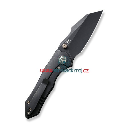 Robustní EDC nůž s černou tanto čepelí a titanovou rukojetí