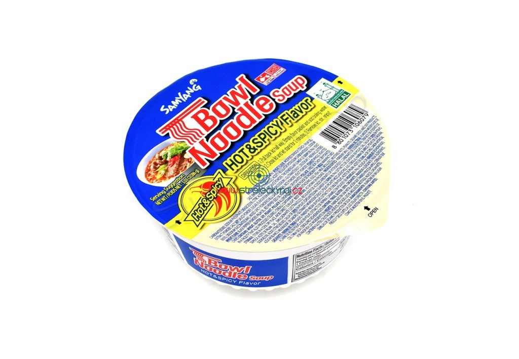 Pyszny Ramen z pysznym i ciągnącym makaronem!Otworzyć wieczko, dodać wszystkie załączone przyprawy, zalać wrzątkiem do zaznaczonej linii, poczekać 3 min.